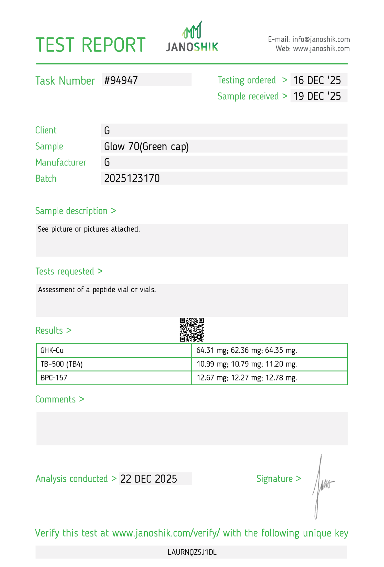 https://janoshik.com/tests/94947-Glow_70Green_cap_LAURNQZSJ1DL