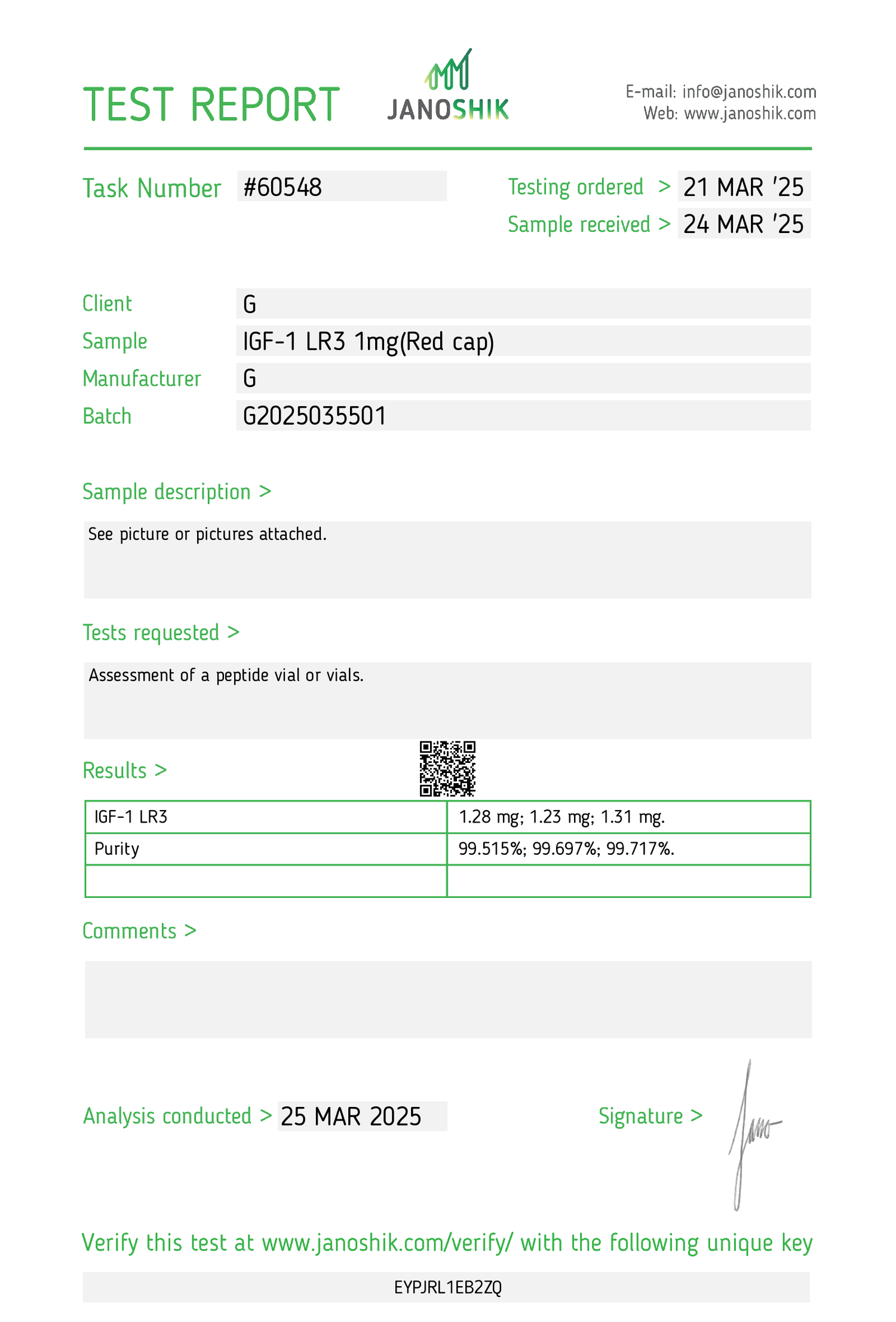 https://janoshik.com/tests/60548-IGF1_LR3_1mgRed_cap_EYPJRL1EB2ZQ