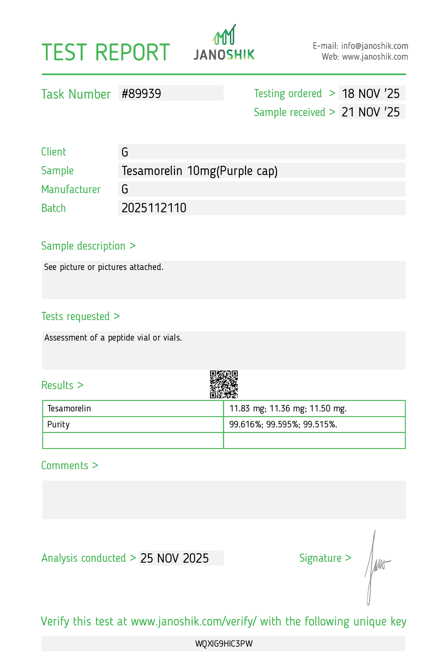 https://janoshik.com/tests/89939-Tesamorelin_10mgPurple_cap_WQXIG9HIC3PW